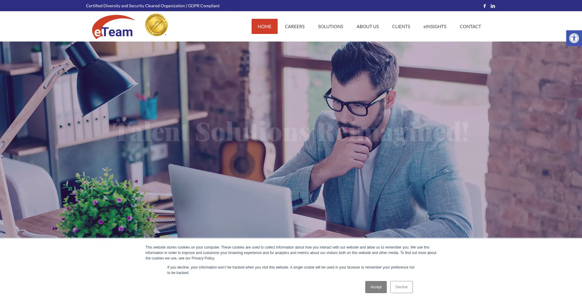 网站上存在社交媒体链接表明 eteaminc.com 在社交媒体上维护官方账户,这是可信度和参与度的积极信号。