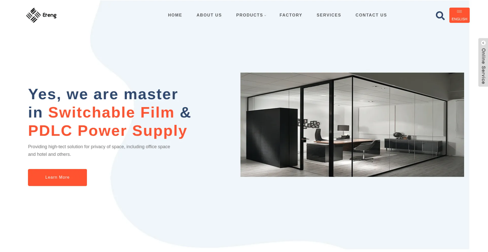 ETENG is a leading vendor of high-tech film for glass buildings, focused on developing, manufacturing, and marketing switchable film and power technology.