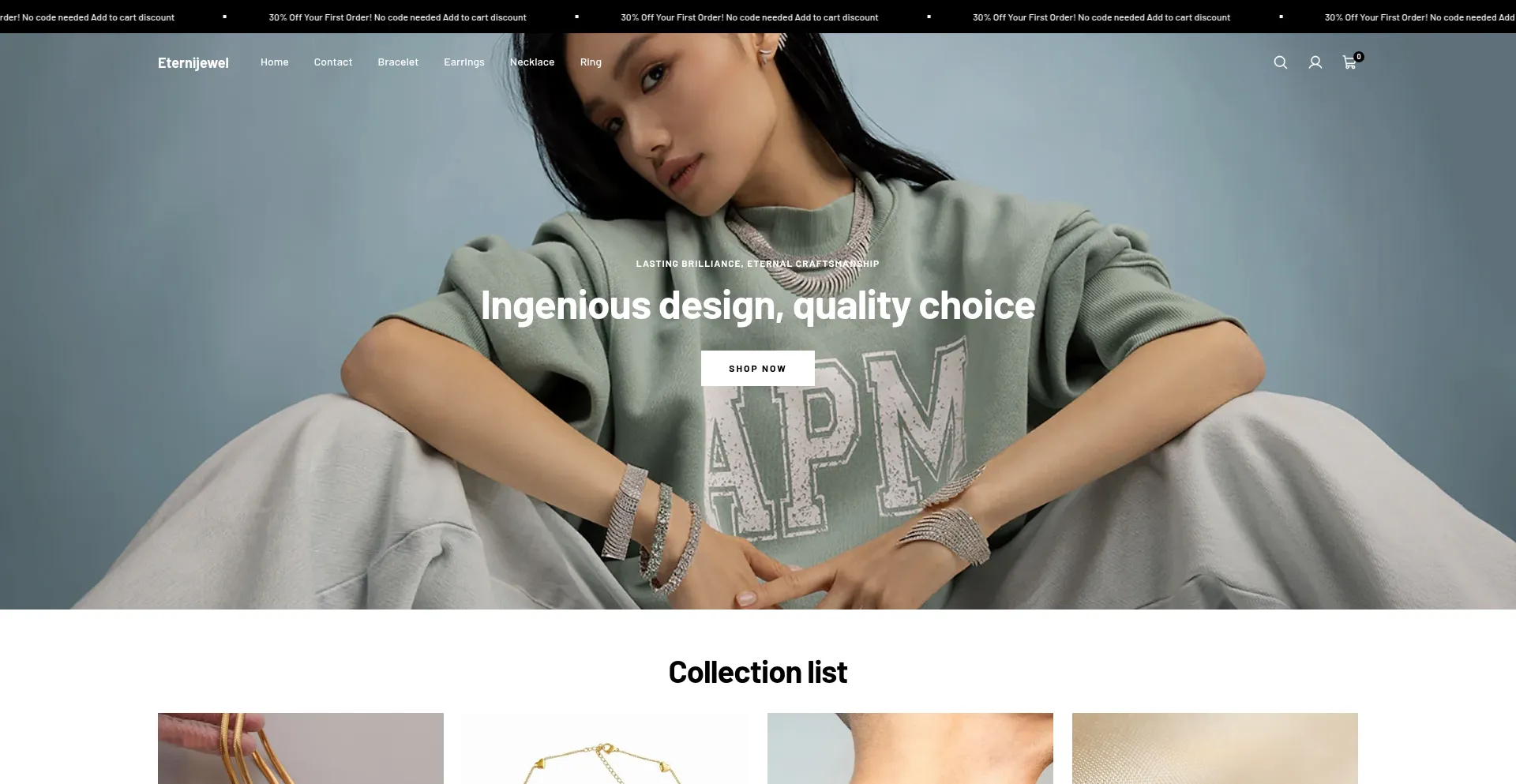 该网站实现数据收集表单,请求个人信息,包括姓名、电子邮件地址、电话号码或其他敏感详细信息。用户应验证 eternijewel.com 的合法性并在提交个人数据前查看隐私政策。