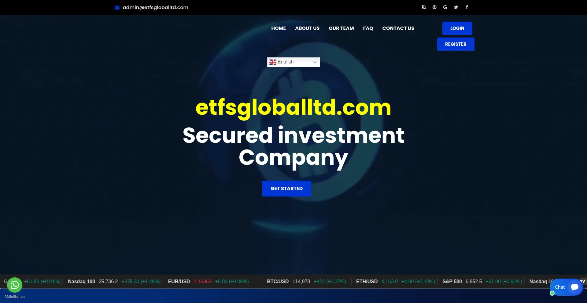 分析显示 etfsgloballtd.com 显示社交媒体图标或链接,但不连接到合法的社交媒体档案。这种欺骗性做法通常用于创造虚假合法性,代表需要立即谨慎的欺诈意图的重要指标。