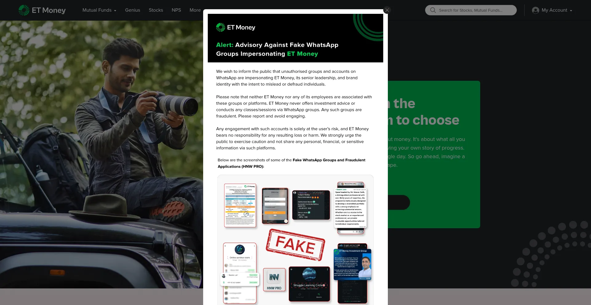 该网站实现数据收集表单,请求个人信息,包括姓名、电子邮件地址、电话号码或其他敏感详细信息。用户应验证 etmoney.com 的合法性并在提交个人数据前查看隐私政策。