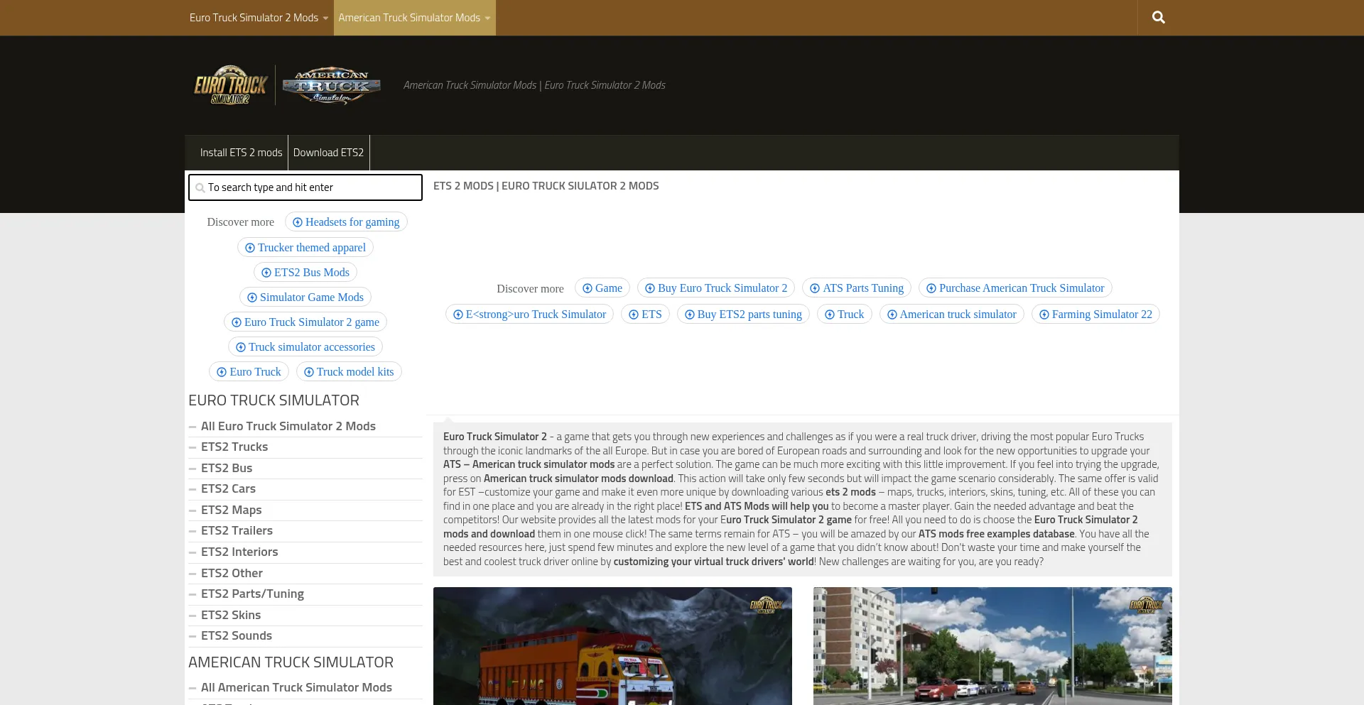 Download Euro Truck Simulator 2 mods and American Truck simulator mods now! Select ETS2 mods or ATS Mods and get all trucks, maps, cars, bus or any FREE mods for ETS2 and ATS game!