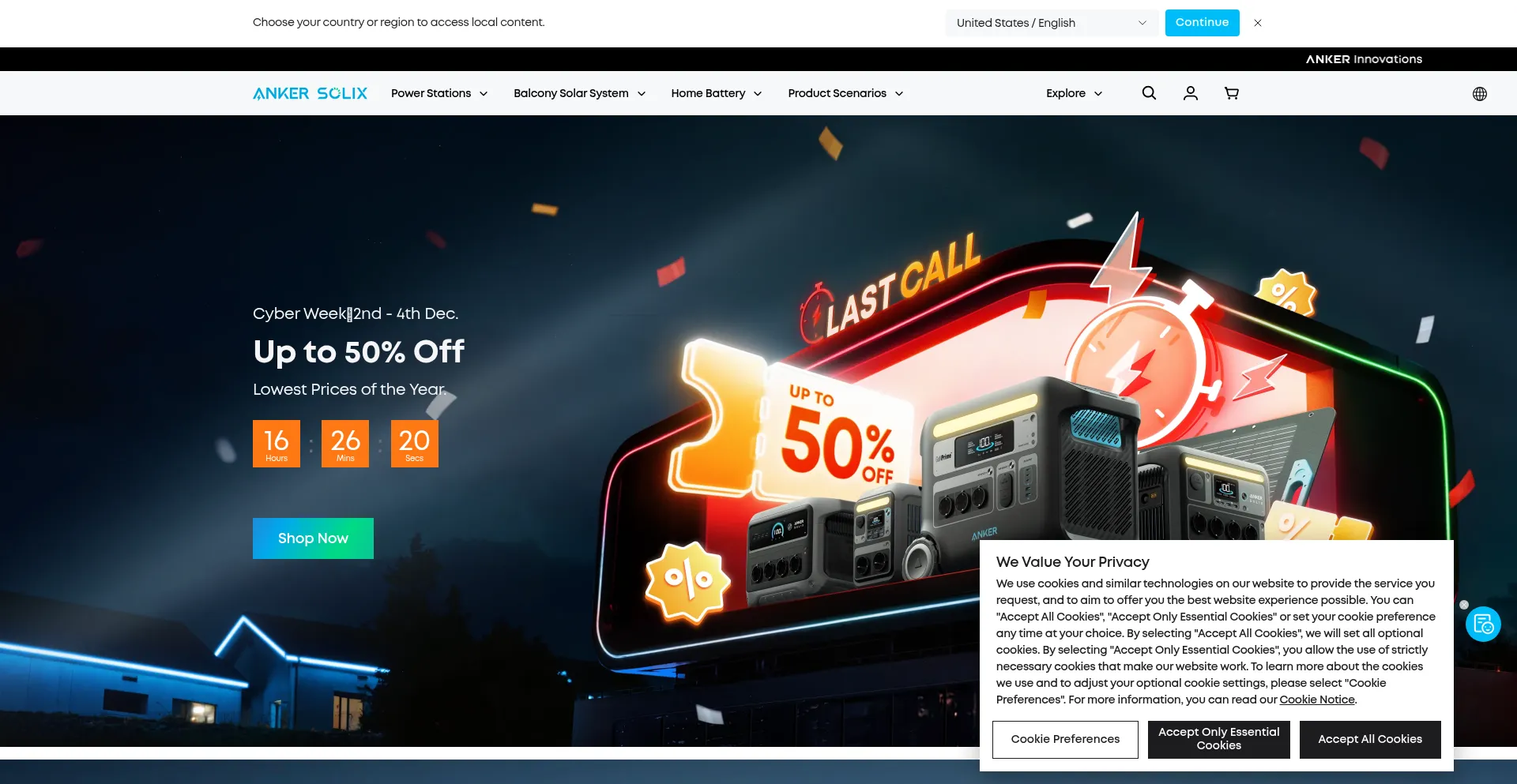 该网站实现符合GDPR或CCPA等隐私法规的cookie同意机制。这表明 eu.ankersolix.com 遵守数据保护标准并为用户提供对个人数据收集实践的控制。