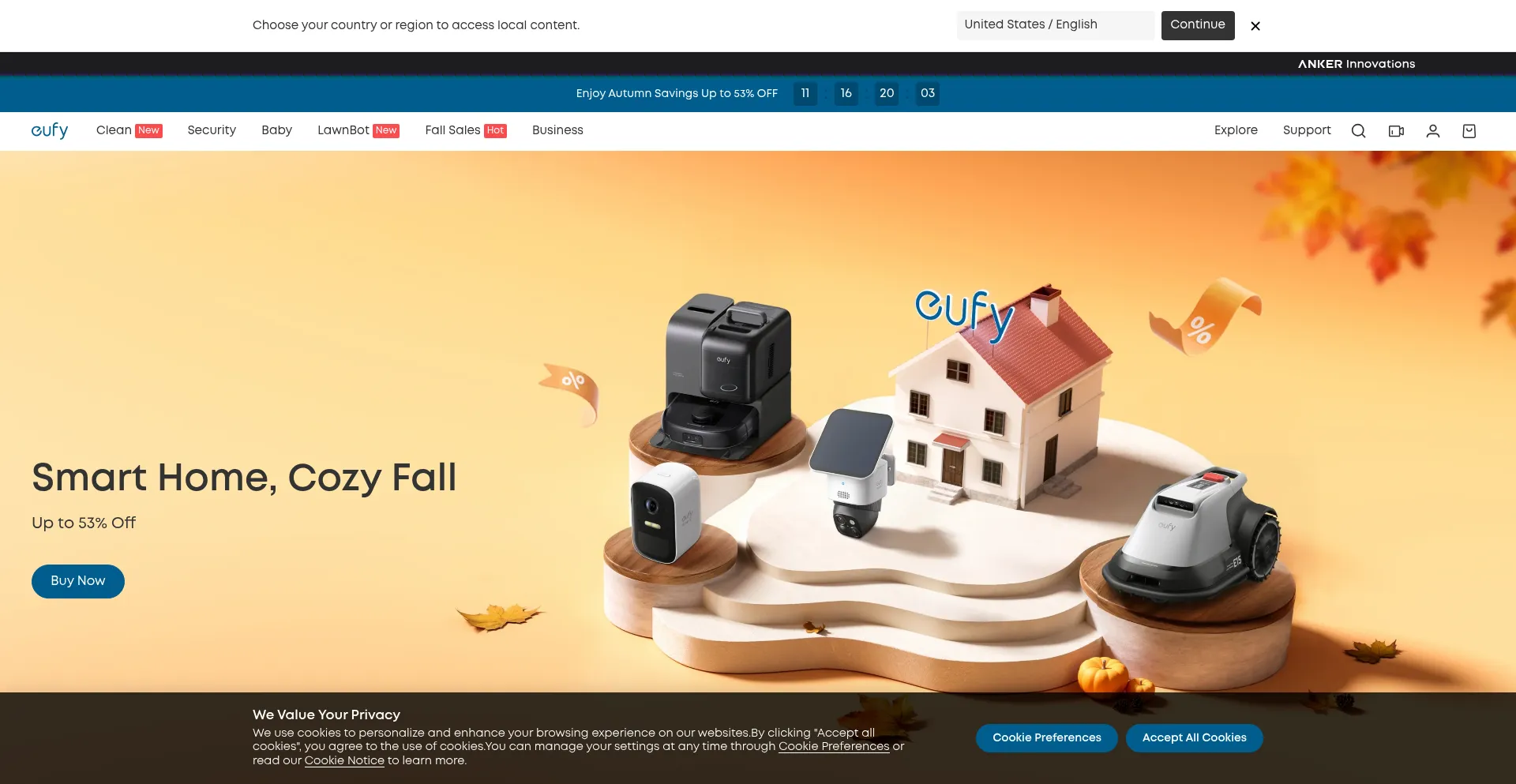 该网站实现符合GDPR或CCPA等隐私法规的cookie同意机制。这表明 eu.eufy.com 遵守数据保护标准并为用户提供对个人数据收集实践的控制。