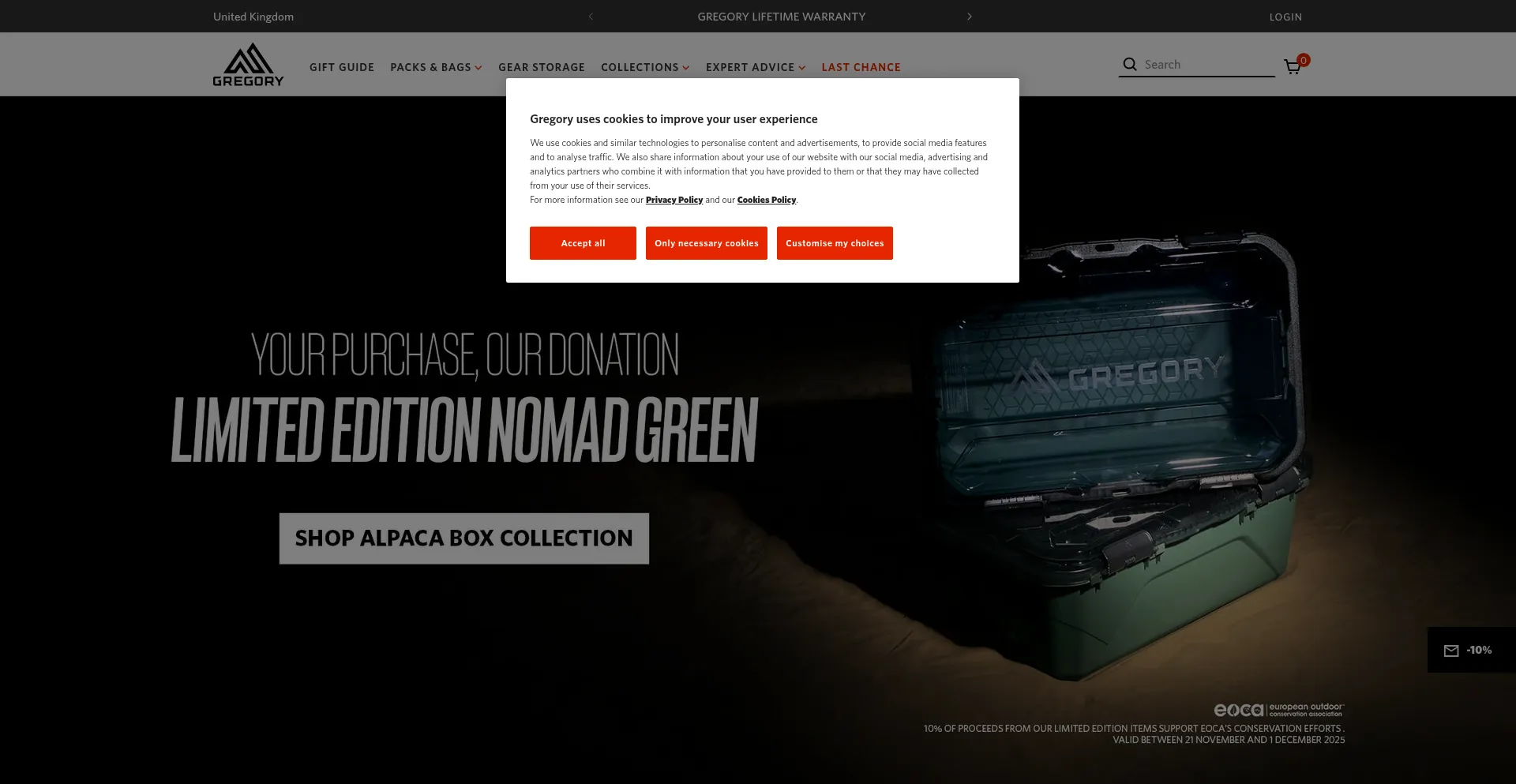 该网站实现符合GDPR或CCPA等隐私法规的cookie同意机制。这表明 eu.gregorypacks.com 遵守数据保护标准并为用户提供对个人数据收集实践的控制。
