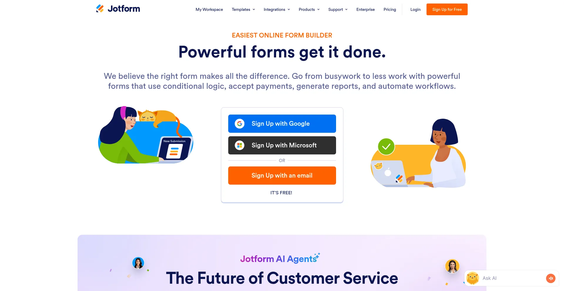 Create forms and surveys for free with Jotform’s drag-and-drop form builder. Start collecting registrations, applications, orders, and payments today.