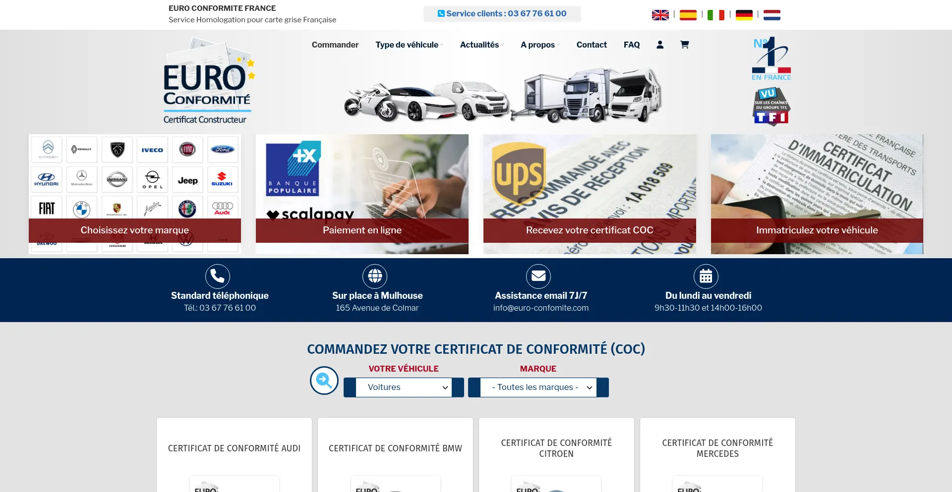 Commandez le certificat de conformité officiel et original avec notre service homologation et recevez le Certificat de Conformité Européen (COC) pour votre voiture, auto et m...