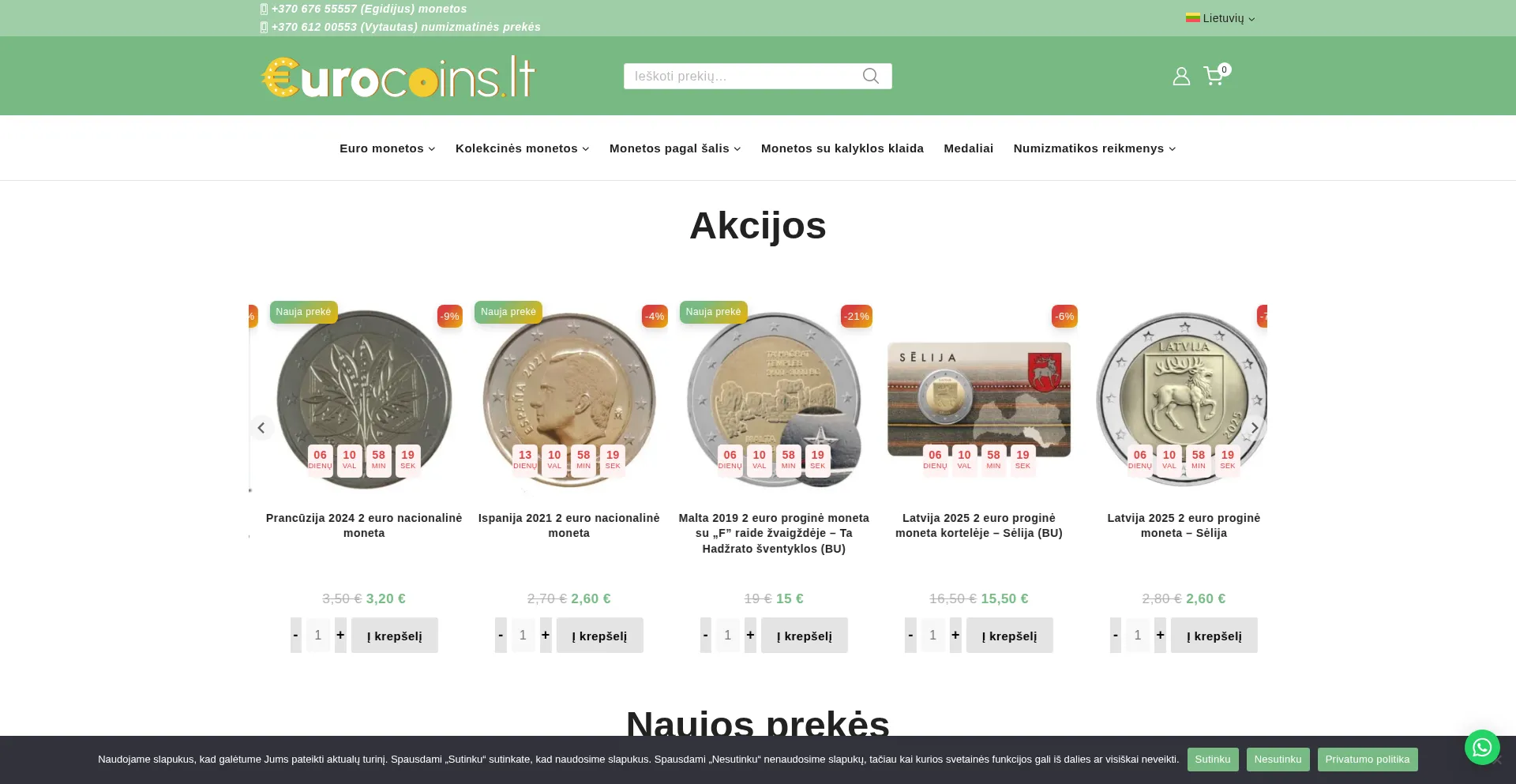 Internetinė parduotuvė, siūlanti platų Euro monetų asortimentą, įskaitant kolekcines, sidabrines, aukso monetas ir numizmatikos priedus.