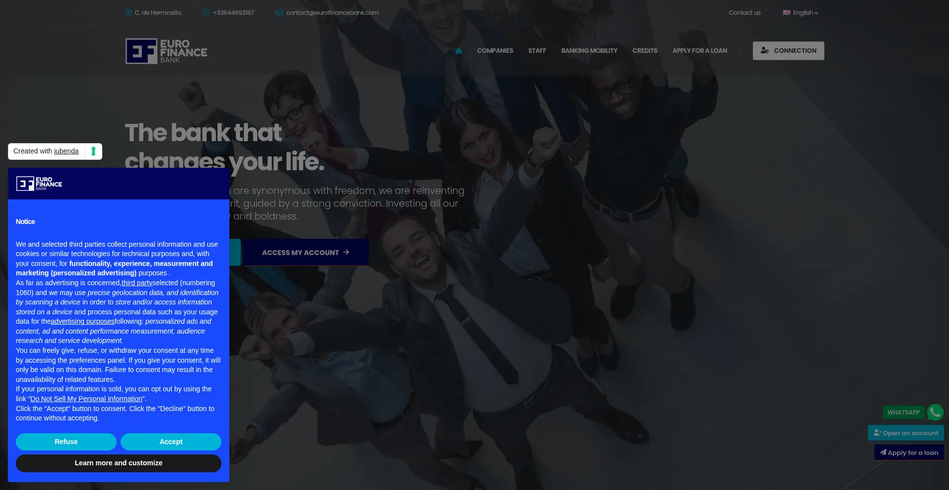 该网站实现数据收集表单,请求个人信息,包括姓名、电子邮件地址、电话号码或其他敏感详细信息。用户应验证 eurofinancebank.com 的合法性并在提交个人数据前查看隐私政策。