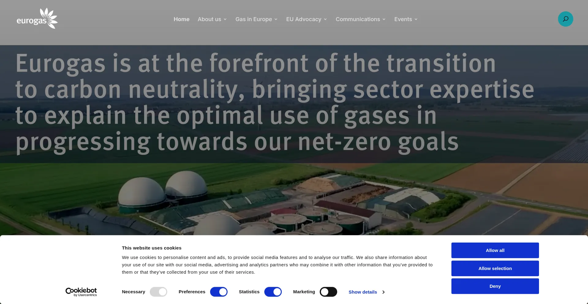 该网站实现符合GDPR或CCPA等隐私法规的cookie同意机制。这表明 eurogas.org 遵守数据保护标准并为用户提供对个人数据收集实践的控制。