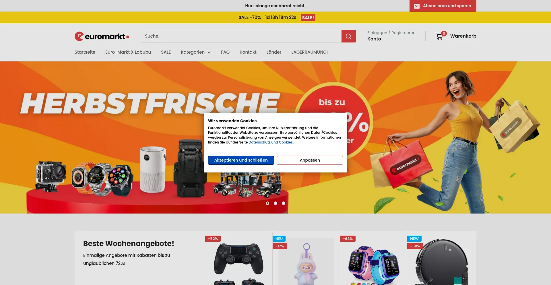 euromarkt.de 使用 Google Tag Manager 在其网站上添加和更新追踪代码(标签)。