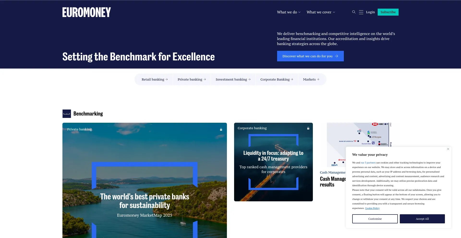 该网站实现符合GDPR或CCPA等隐私法规的cookie同意机制。这表明 euromoney.com 遵守数据保护标准并为用户提供对个人数据收集实践的控制。