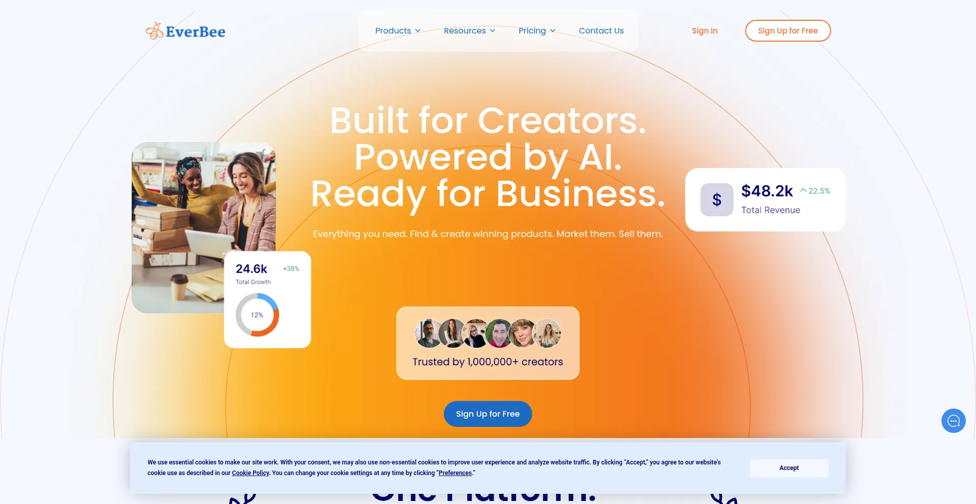 EverBee offers powerful AI tools for content creation, from website design to SEO to email marketing & product research. Boost productivity & increase traffic.