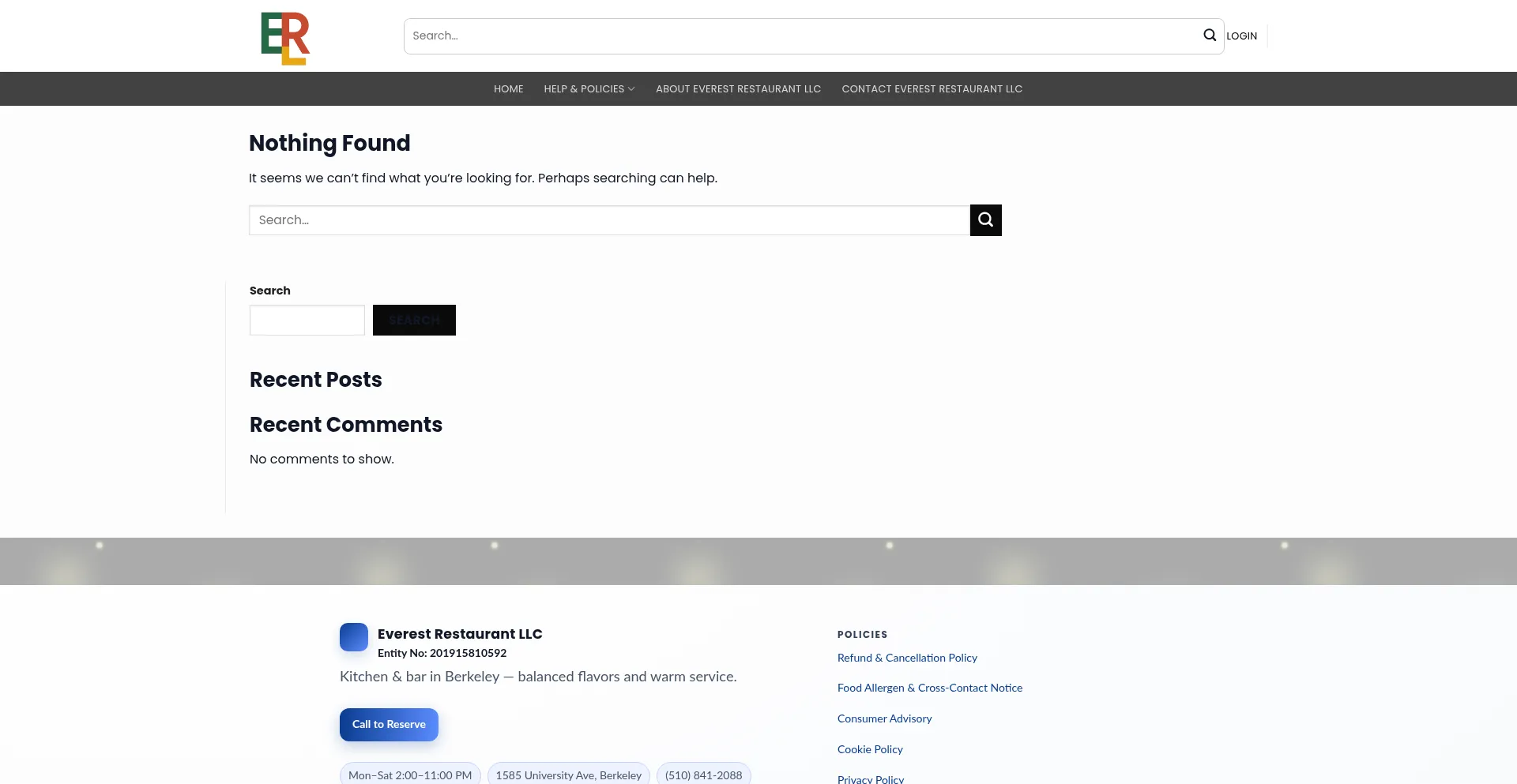 该网站实现符合GDPR或CCPA等隐私法规的cookie同意机制。这表明 everrestrestaurant.us 遵守数据保护标准并为用户提供对个人数据收集实践的控制。