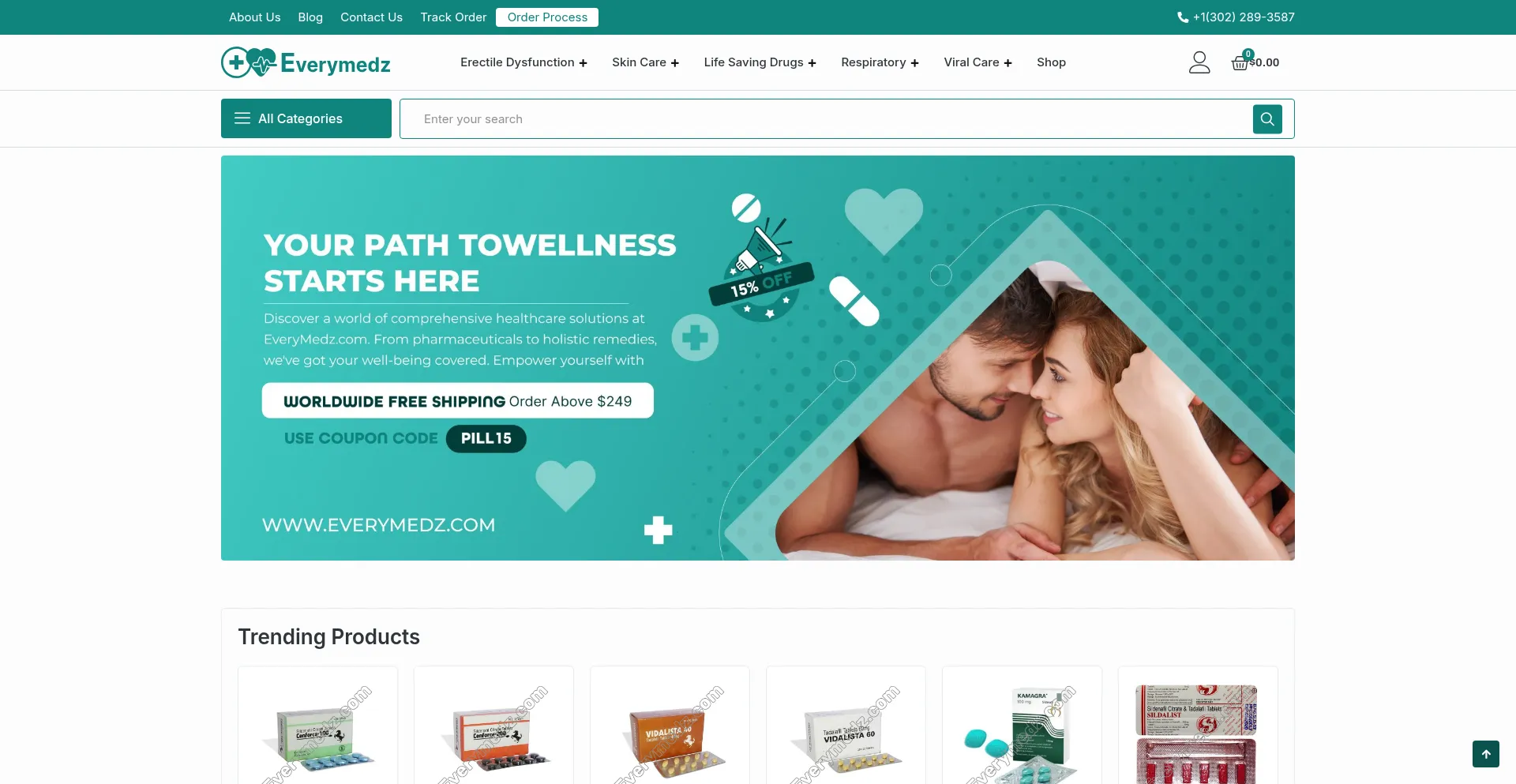 分析表明 everymedz.com 作为电子商务平台运营,促进商品或服务的在线交易。该网站实现了购物车功能、支付处理系统和产品目录功能,这些是商业零售运营的典型特征。