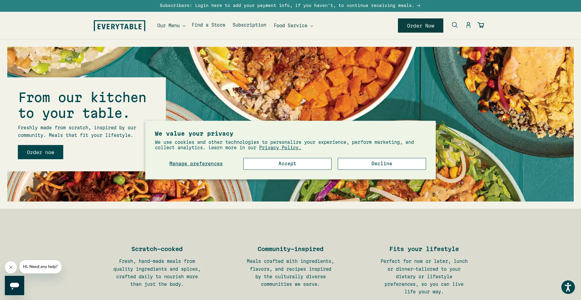 该网站实现符合GDPR或CCPA等隐私法规的cookie同意机制。这表明 everytablefresh.com 遵守数据保护标准并为用户提供对个人数据收集实践的控制。