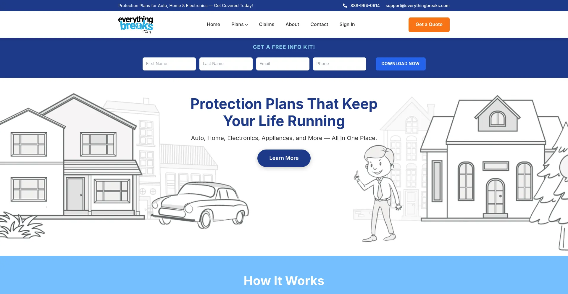 该网站实现数据收集表单,请求个人信息,包括姓名、电子邮件地址、电话号码或其他敏感详细信息。用户应验证 everythingbreaks.com 的合法性并在提交个人数据前查看隐私政策。