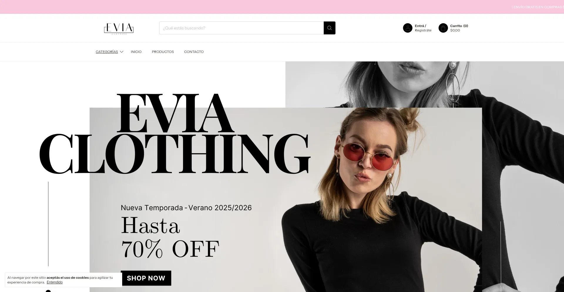 该网站实现数据收集表单,请求个人信息,包括姓名、电子邮件地址、电话号码或其他敏感详细信息。用户应验证 eviaclothing.mitiendanube.com 的合法性并在提交个人数据前查看隐私政策。