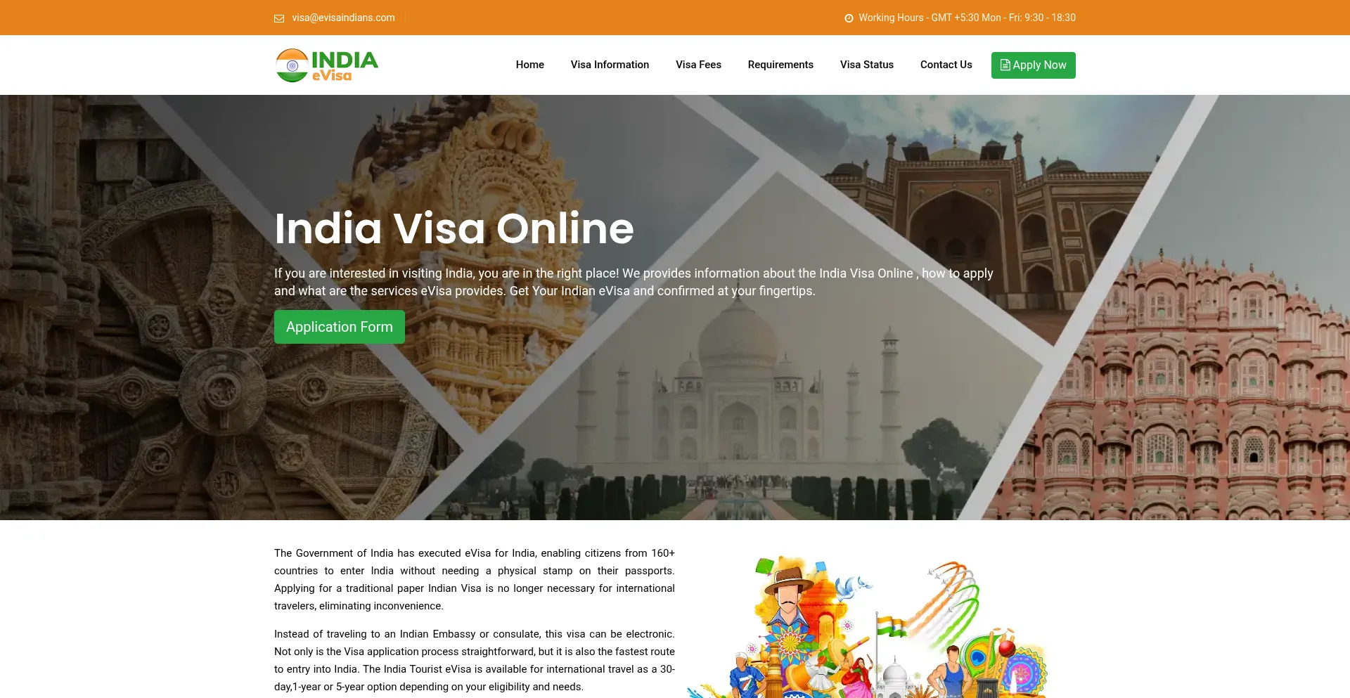 该网站实现数据收集表单,请求个人信息,包括姓名、电子邮件地址、电话号码或其他敏感详细信息。用户应验证 evisaindians.com 的合法性并在提交个人数据前查看隐私政策。