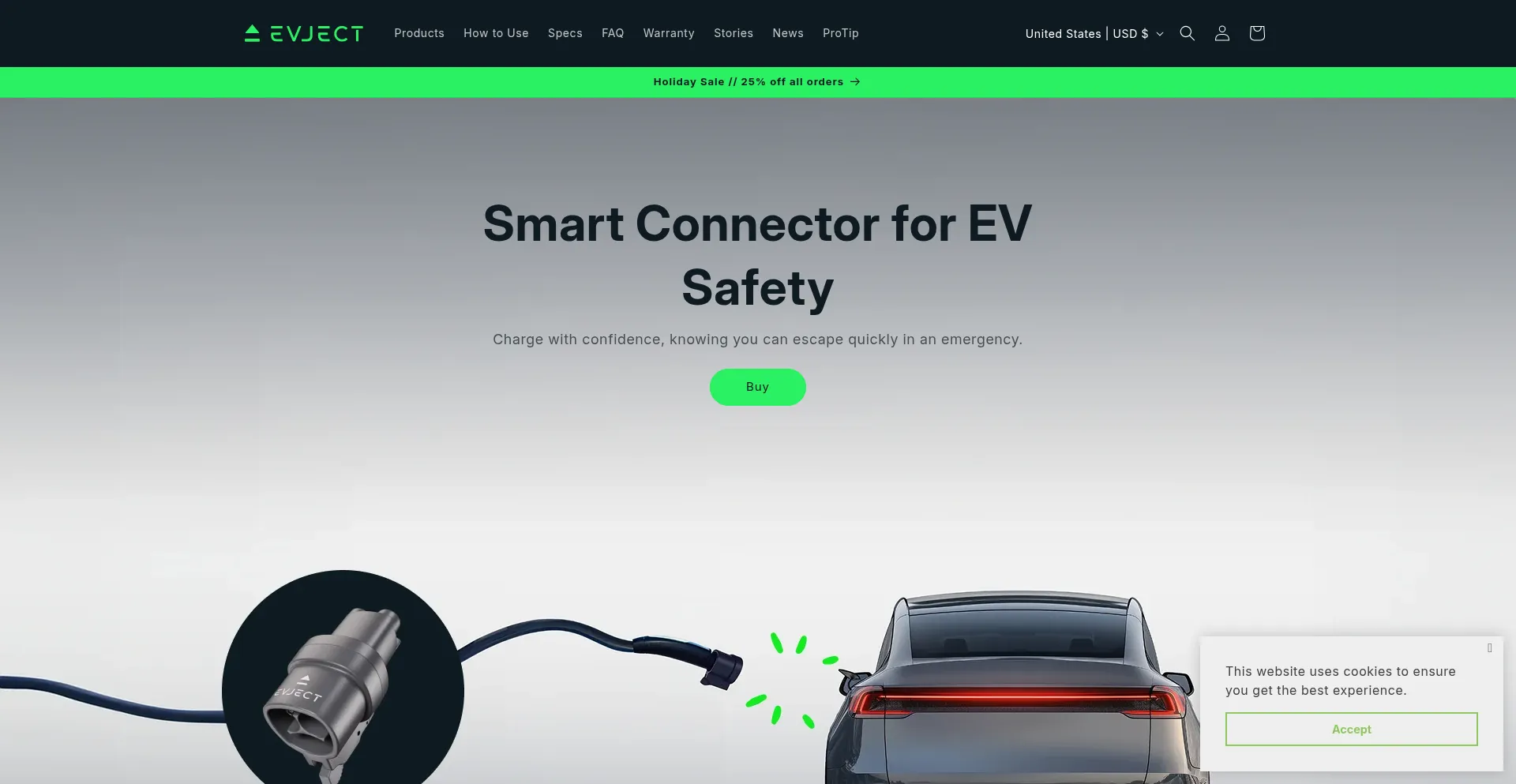 该网站实现符合GDPR或CCPA等隐私法规的cookie同意机制。这表明 evject.com 遵守数据保护标准并为用户提供对个人数据收集实践的控制。