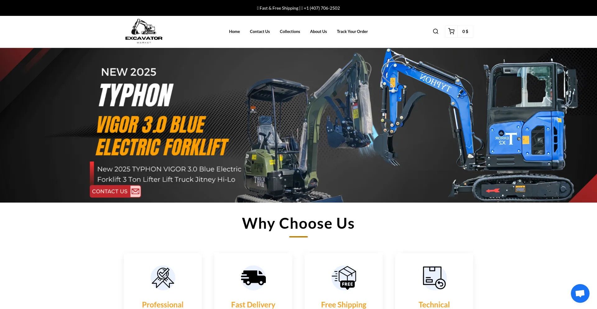 分析表明 excavatormarket.com 作为电子商务平台运营,促进商品或服务的在线交易。该网站实现了购物车功能、支付处理系统和产品目录功能,这些是商业零售运营的典型特征。