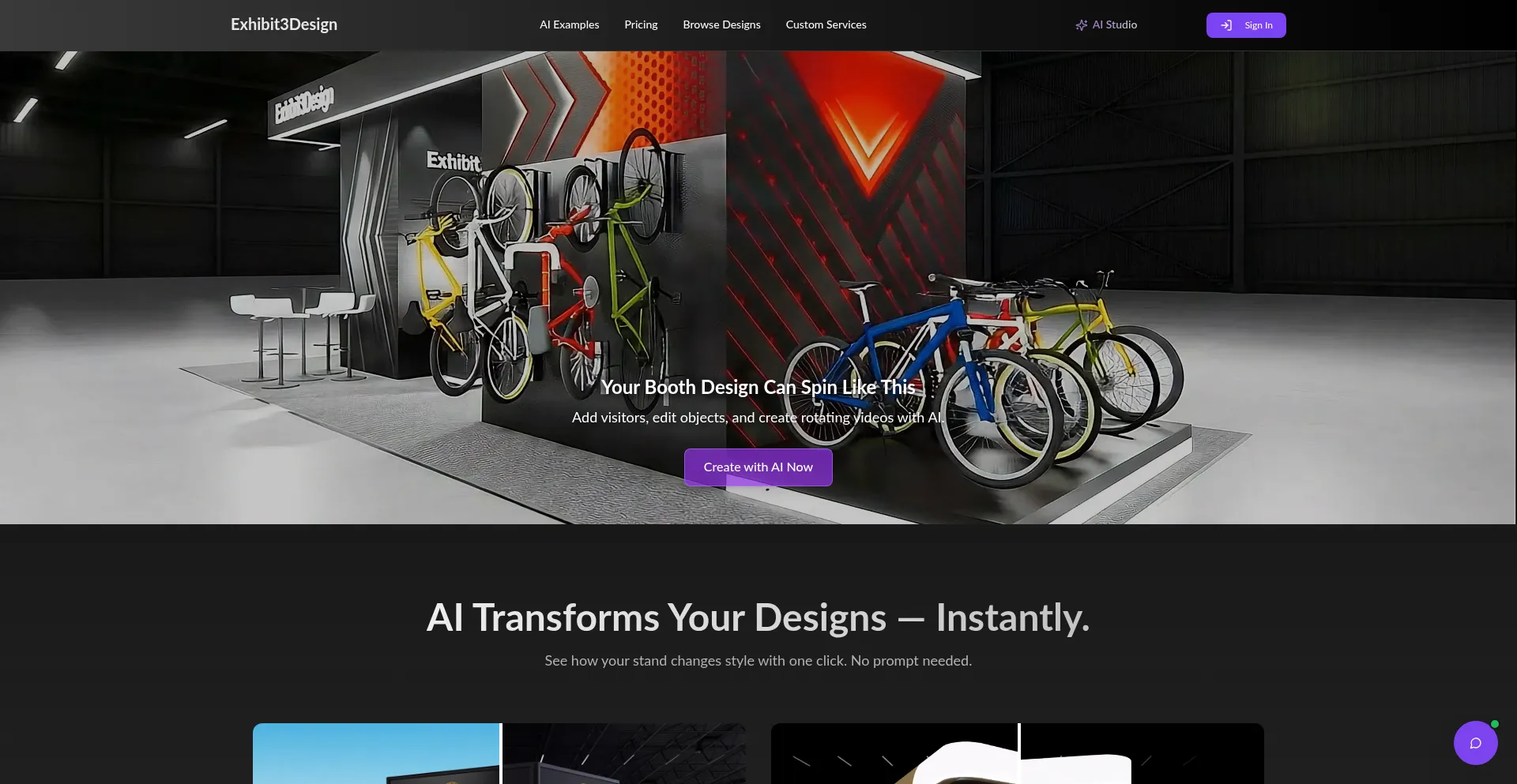 AI tools for exhibition stand designers. Generate 3D booths, add visitors, and make rotating videos in seconds.