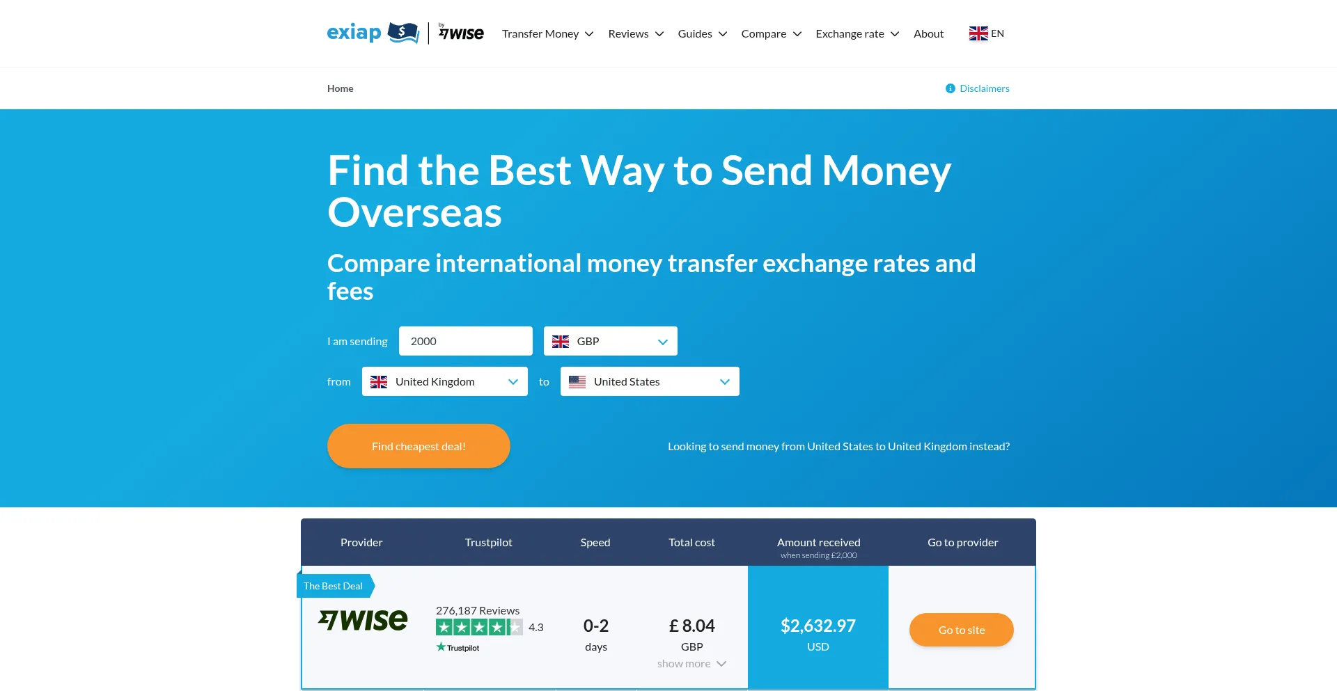 Exiap makes finding the best money transfer exchange rates simple. You can find the cheapest way to exchange currency in seconds. Compare foreign exchange rates from US banks an...