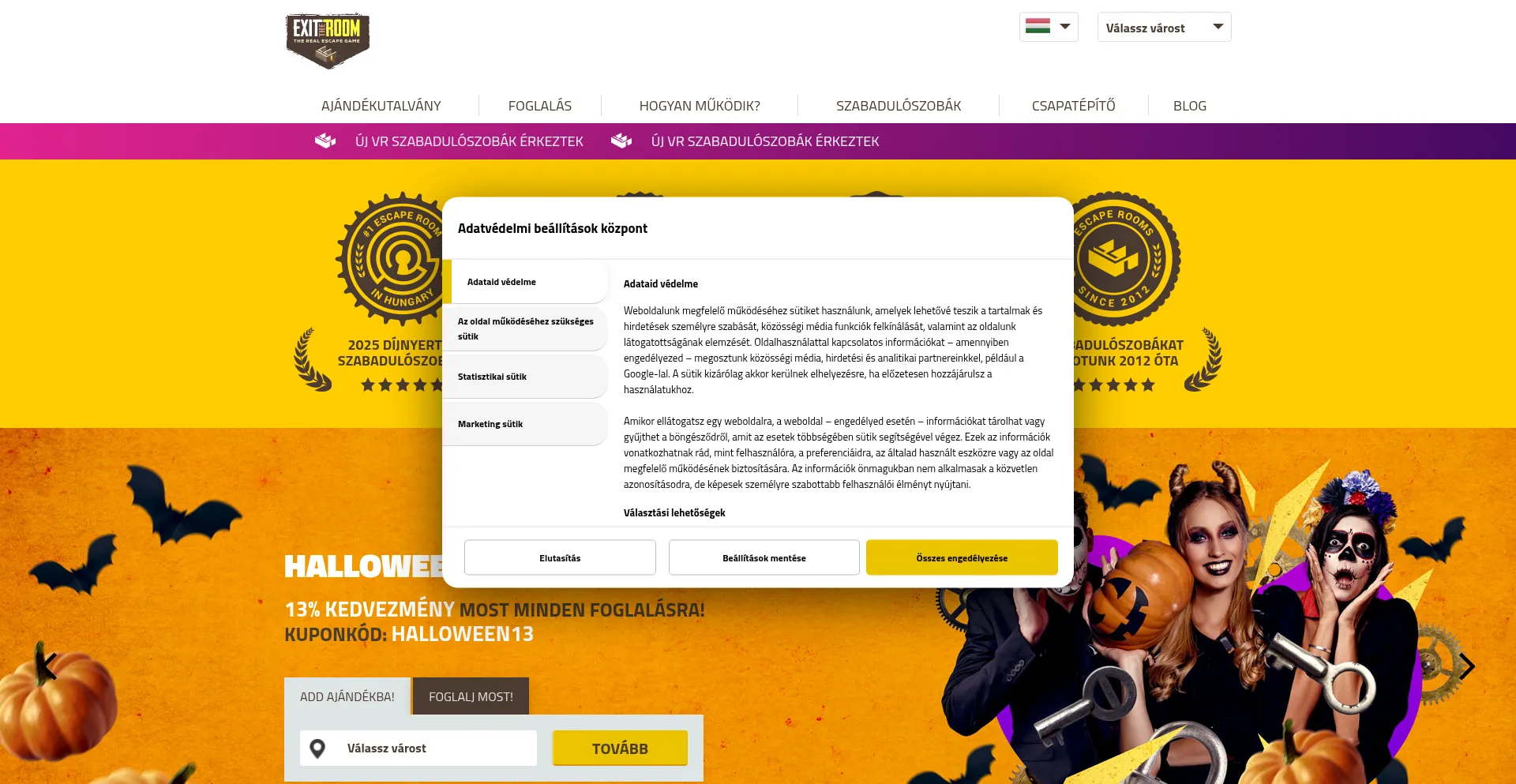exittheroom.hu 使用 Google Tag Manager 在其网站上添加和更新追踪代码(标签)。
