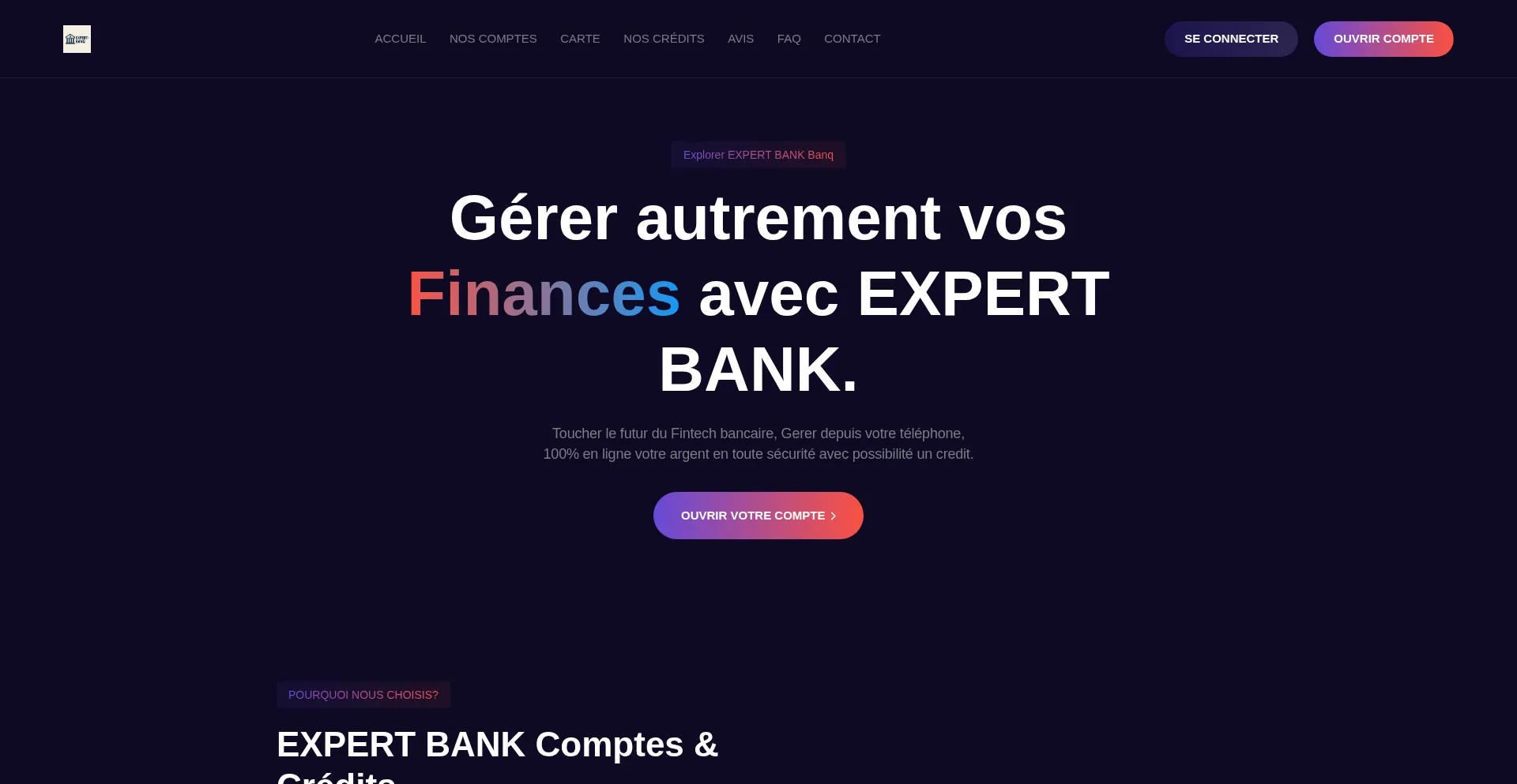 Bienvenue chez EXPERT BANK Banq, votre compte bancaire 100% gratuit