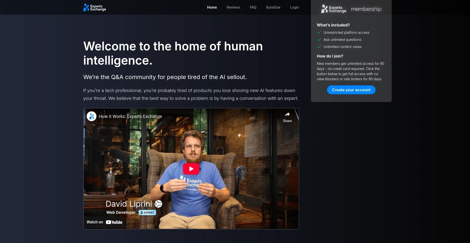Experts Exchange is the Q&A community for people tired of the AI sellout. It's the best place to connect with experts who can answer tough technology questions.