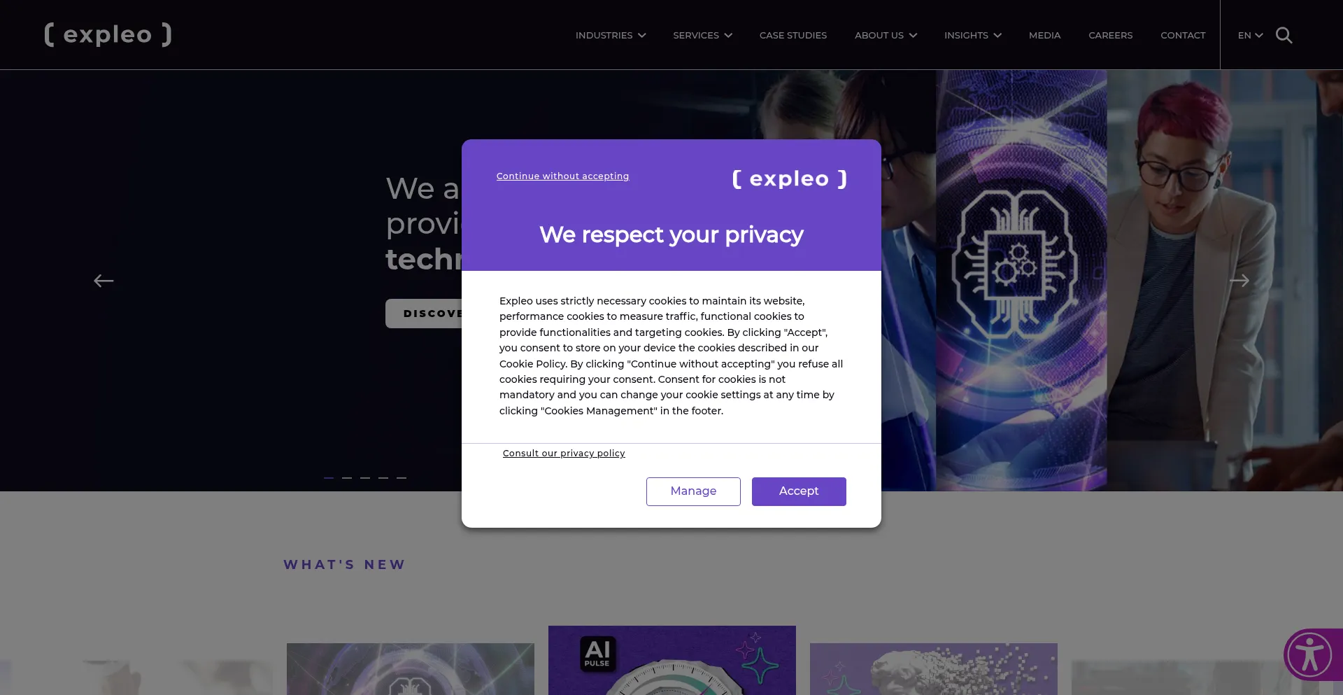 该网站实现符合GDPR或CCPA等隐私法规的cookie同意机制。这表明 expleogroup.com 遵守数据保护标准并为用户提供对个人数据收集实践的控制。