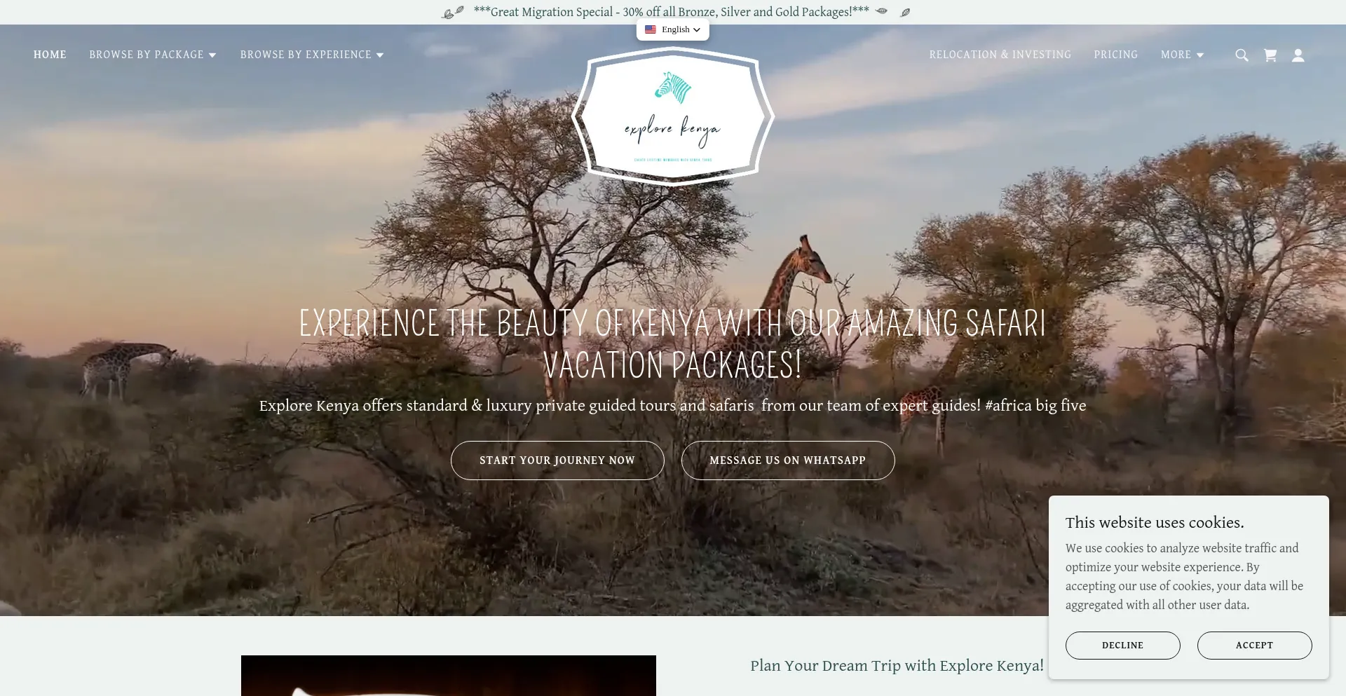 分析表明 explore-kenya.com 作为电子商务平台运营,促进商品或服务的在线交易。该网站实现了购物车功能、支付处理系统和产品目录功能,这些是商业零售运营的典型特征。