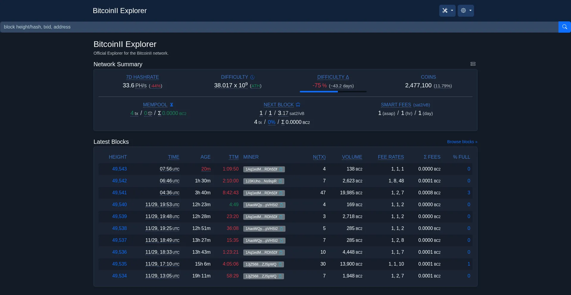 BitcoinII Explorer
