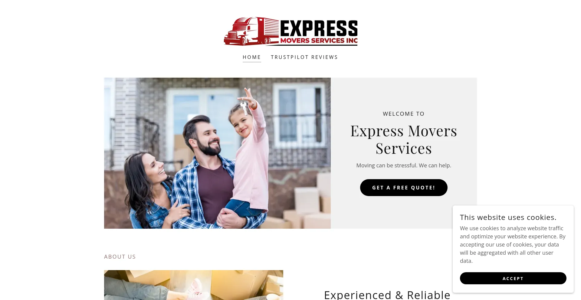 该网站实现符合GDPR或CCPA等隐私法规的cookie同意机制。这表明 expressmoversservices.com 遵守数据保护标准并为用户提供对个人数据收集实践的控制。