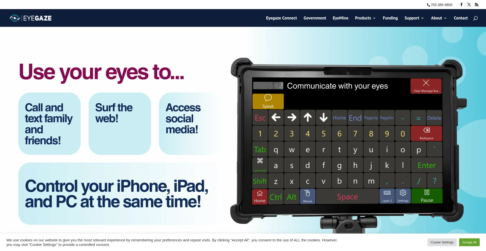 该网站实现符合GDPR或CCPA等隐私法规的cookie同意机制。这表明 eyegaze.com 遵守数据保护标准并为用户提供对个人数据收集实践的控制。
