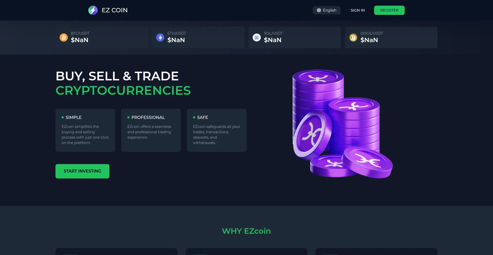 ezcoin.io 使用 Bootstrap,这是一个广泛采用的开源响应式网页开发框架。Bootstrap 通过标准化组件和样式实现移动友好界面的高效创建。
