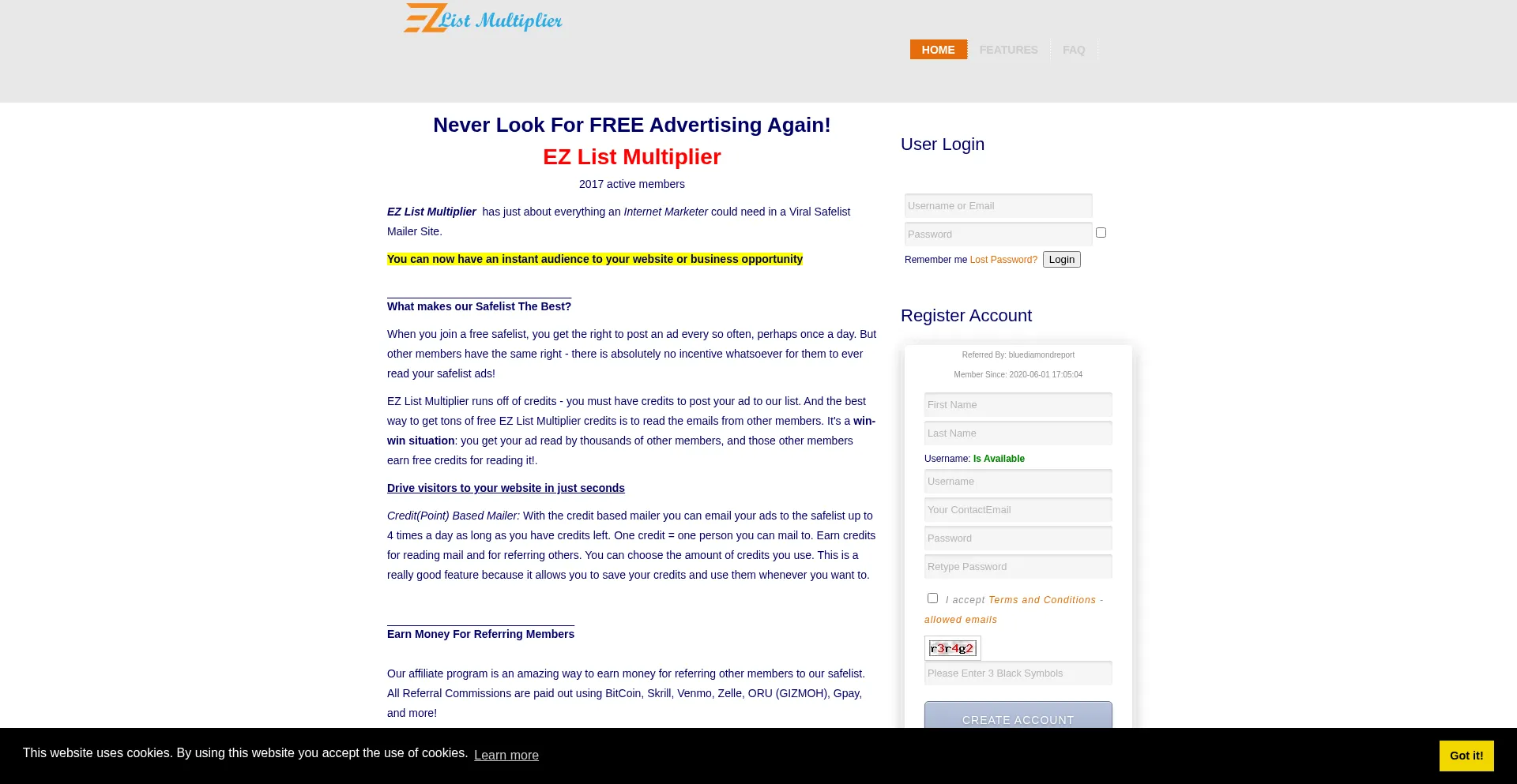 网站上存在社交媒体链接表明 ezlistmultiplier.com 在社交媒体上维护官方账户,这是可信度和参与度的积极信号。