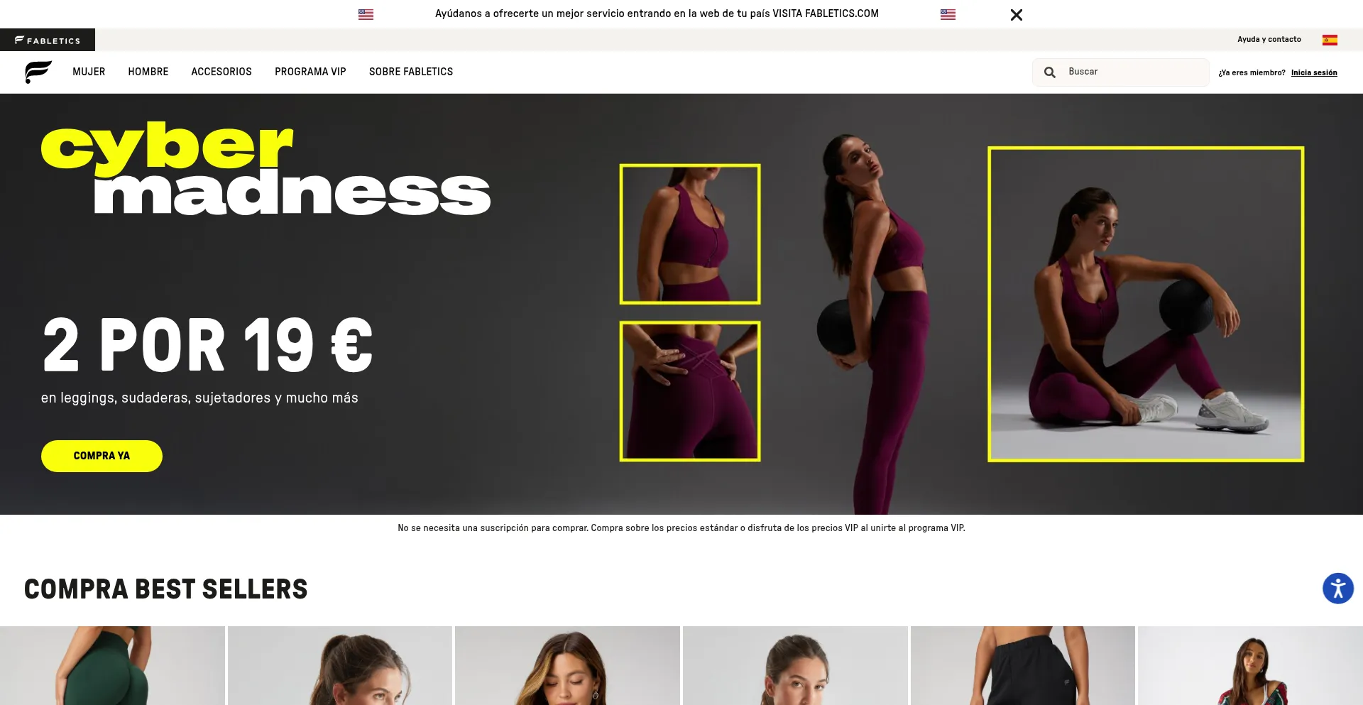 该网站实现数据收集表单,请求个人信息,包括姓名、电子邮件地址、电话号码或其他敏感详细信息。用户应验证 fabletics.es 的合法性并在提交个人数据前查看隐私政策。