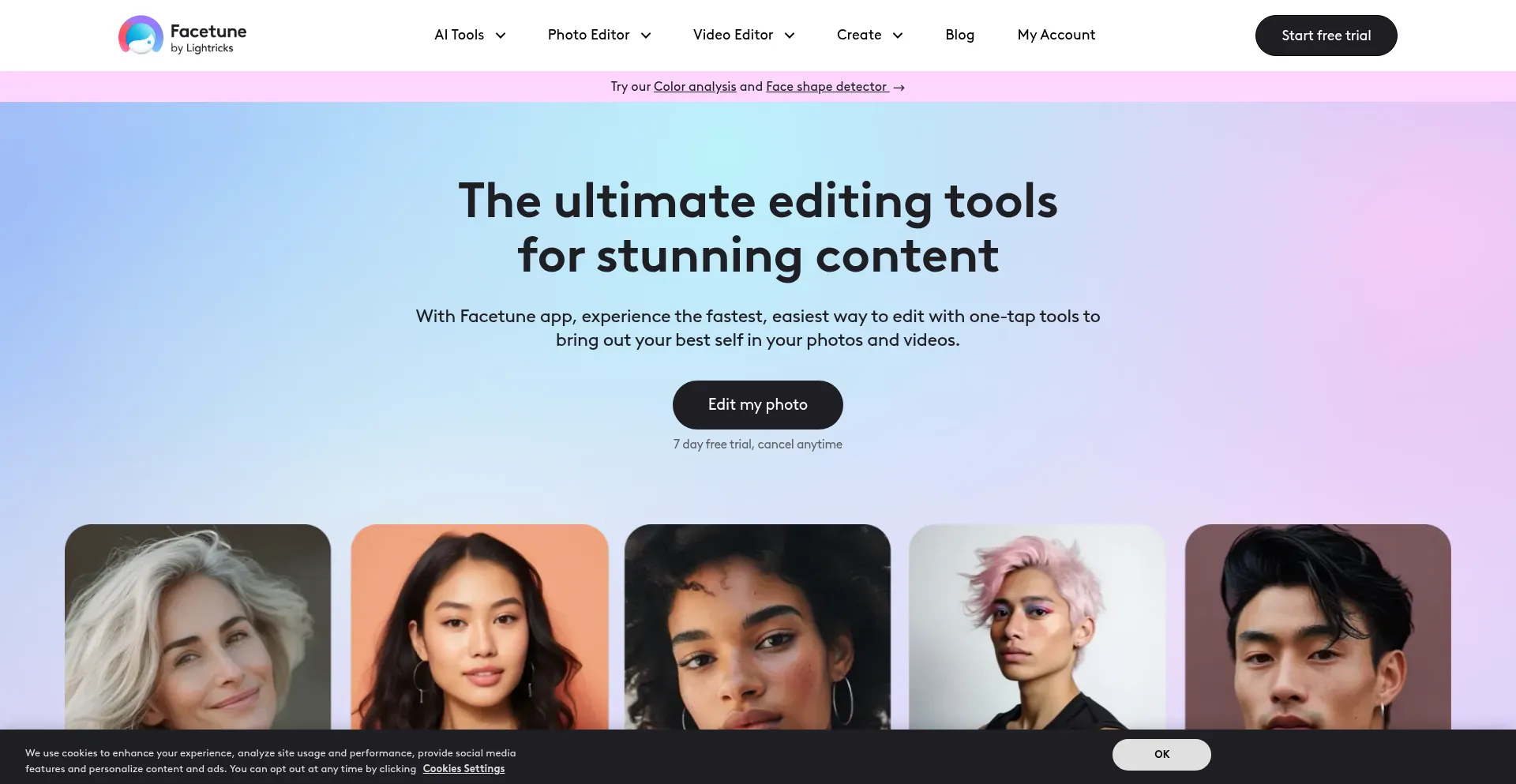 Start your free 7-day trial. Level up your photos and videos and let your visual content shine with editing tools of the world’s top selfie editor.