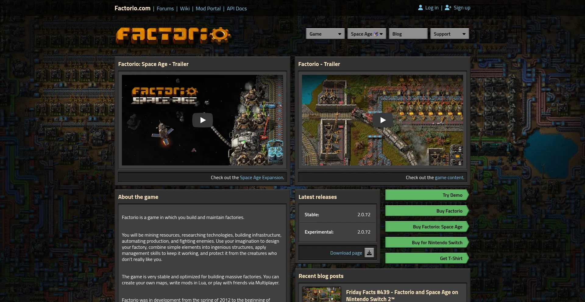 网站上存在社交媒体链接表明 factorio.com 在社交媒体上维护官方账户,这是可信度和参与度的积极信号。