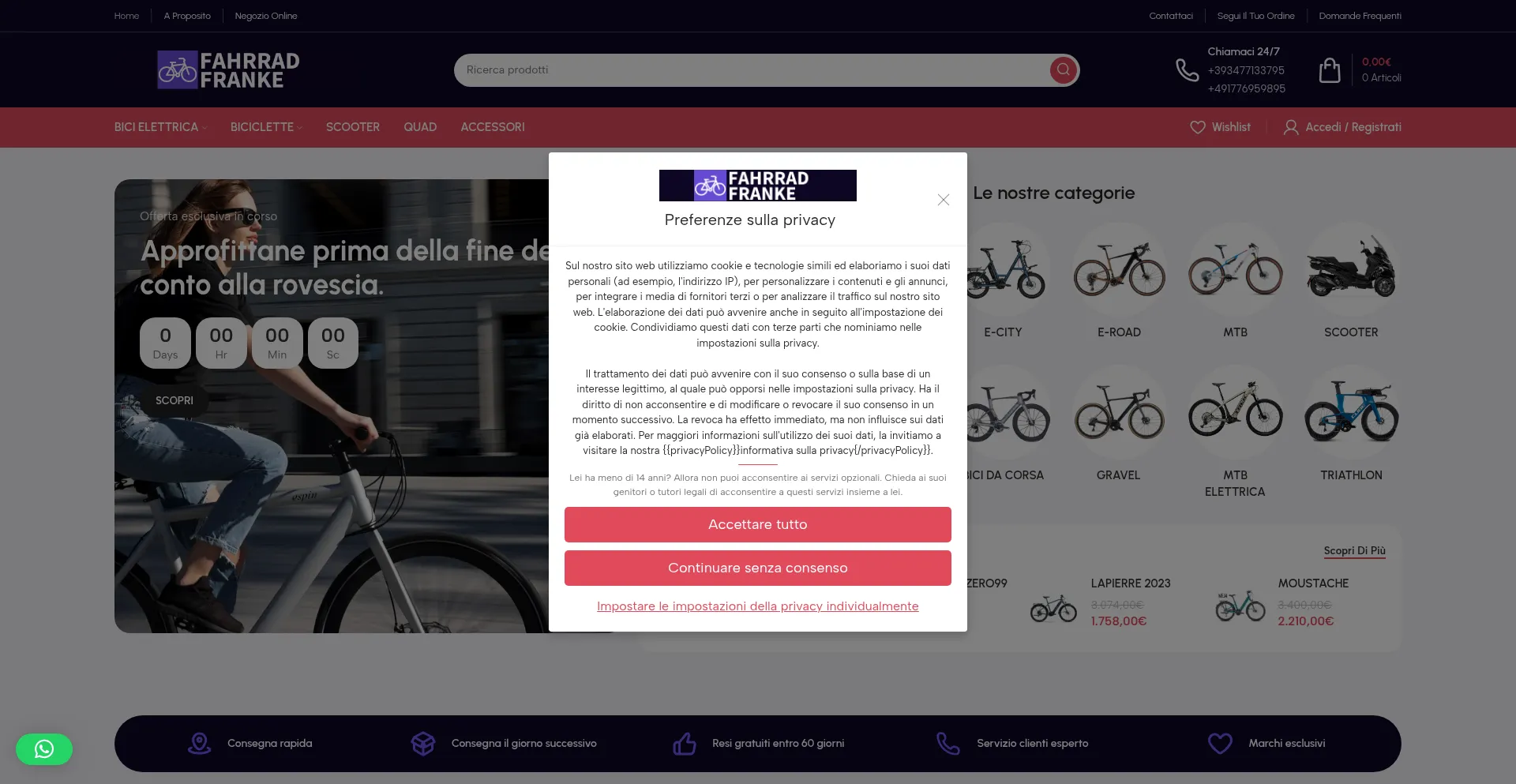 该网站实现数据收集表单,请求个人信息,包括姓名、电子邮件地址、电话号码或其他敏感详细信息。用户应验证 fahrrad-franke.com 的合法性并在提交个人数据前查看隐私政策。