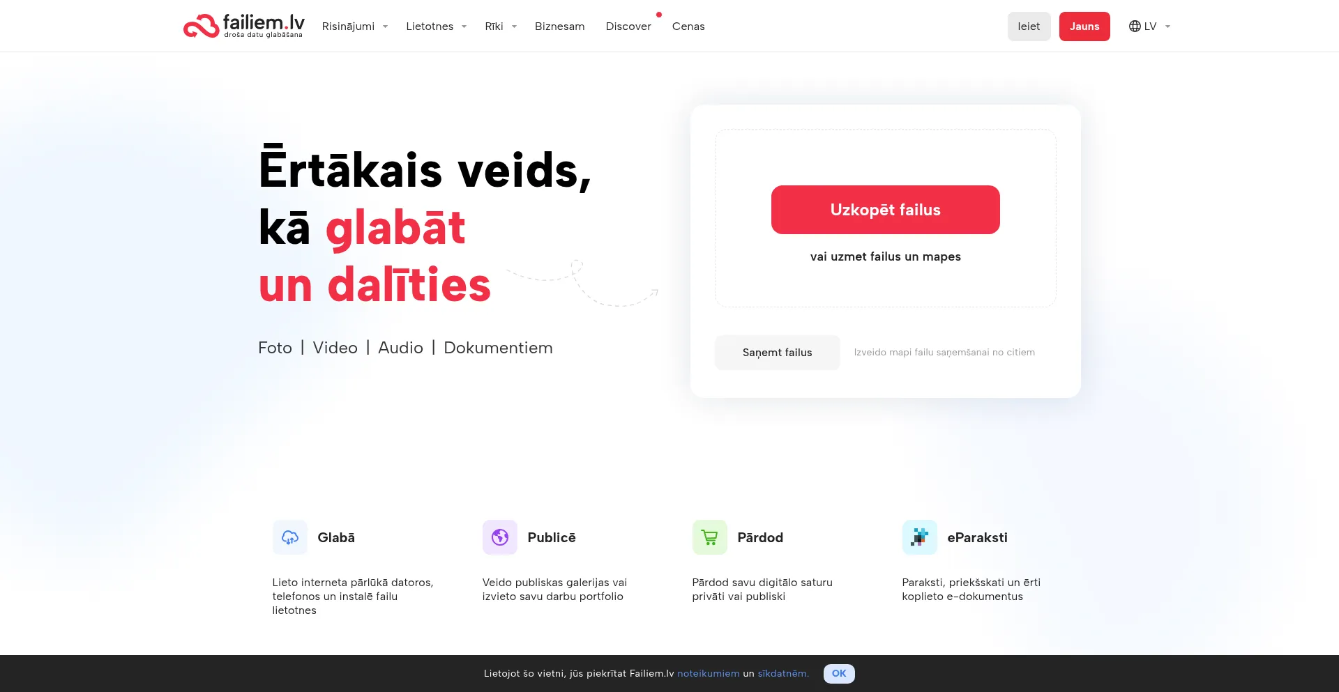 Droša failu glabāšana. Ātra lielu apjomu pārsūtīšana.