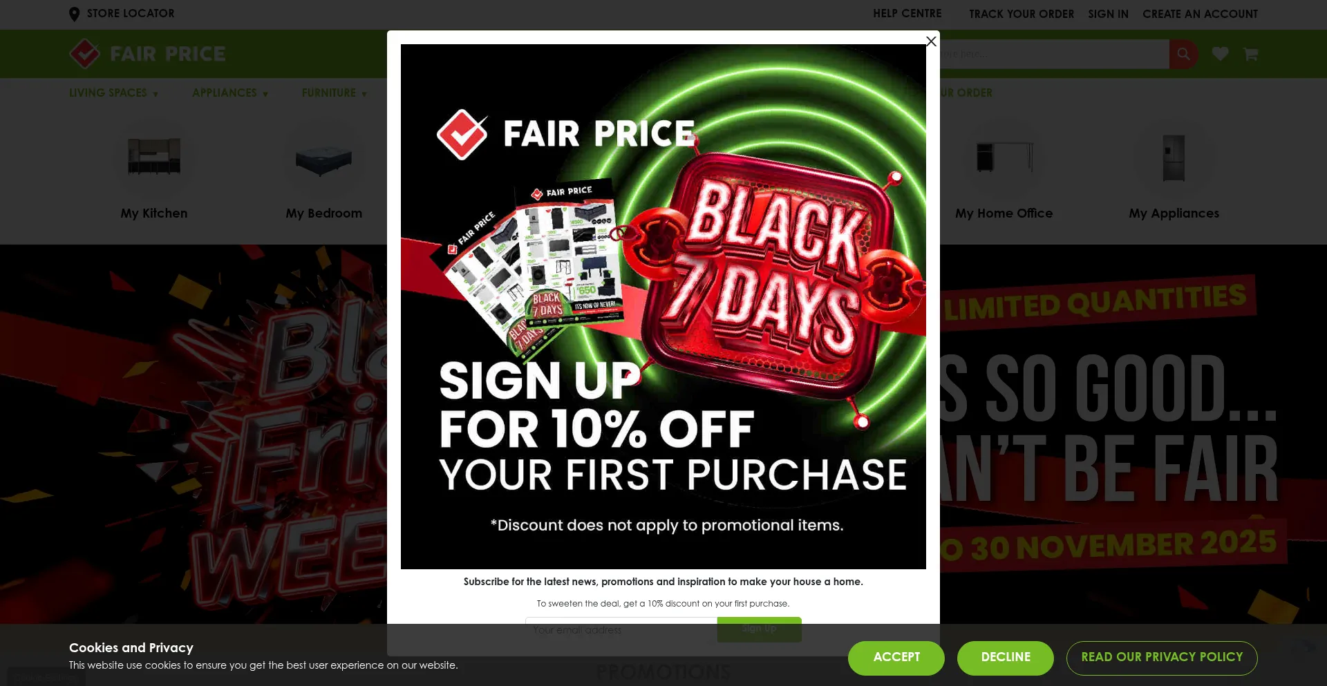 Find state of the art appliances, furniture and electronics on the Fair Price website. Quality products at affordable prices. Shop online now.