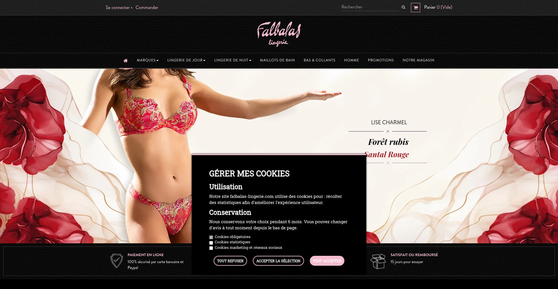 Falbalas Lingerie, boutique Périgourdine depuis 1982. Des marques de qualité : Aubade, Lise Charmele, Simone Pérèle... Livraison offerte à partir de 80 €