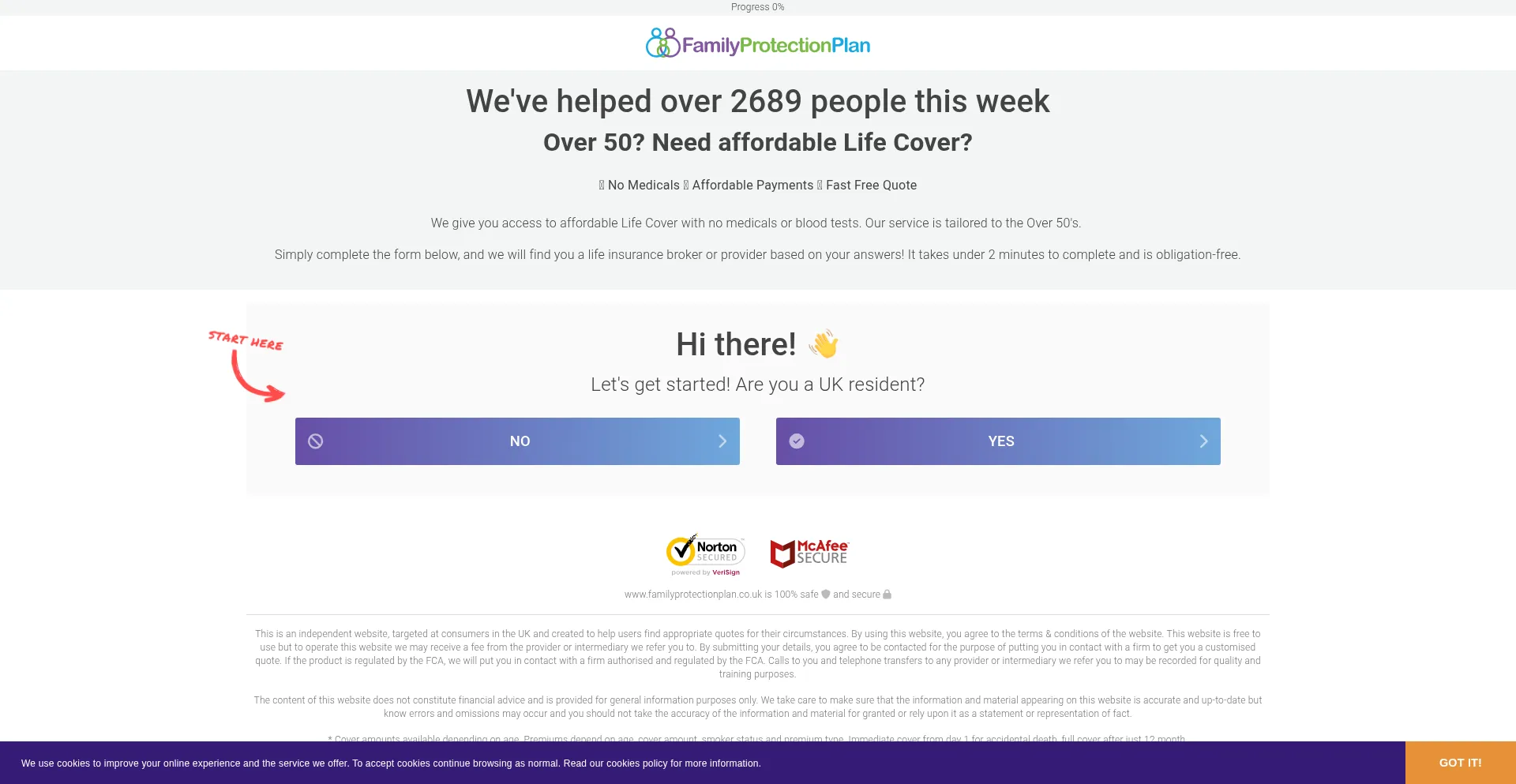 该网站实现符合GDPR或CCPA等隐私法规的cookie同意机制。这表明 familyprotectionplan.co.uk 遵守数据保护标准并为用户提供对个人数据收集实践的控制。
