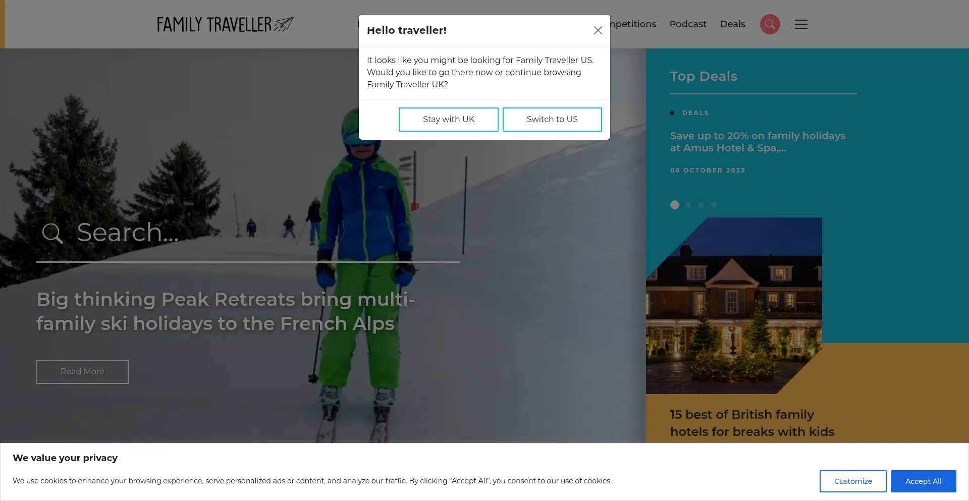 该网站实现符合GDPR或CCPA等隐私法规的cookie同意机制。这表明 familytraveller.com 遵守数据保护标准并为用户提供对个人数据收集实践的控制。