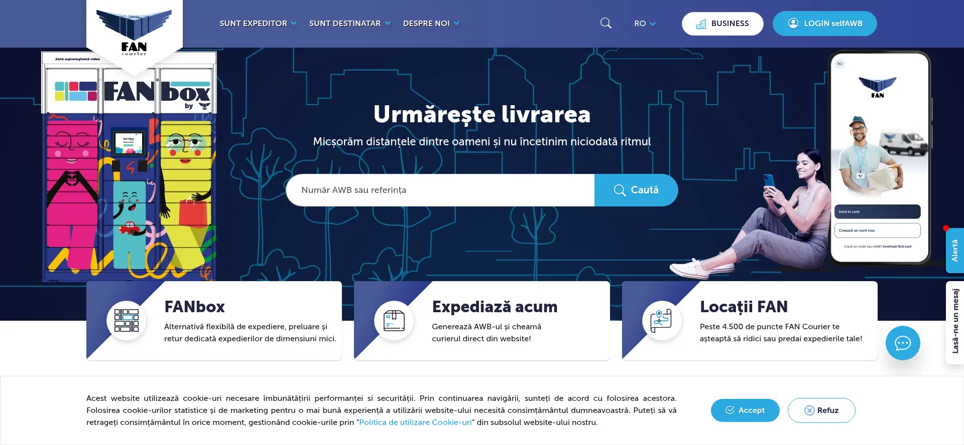 fancourier.ro 提供 Android 设备移动应用程序,表明平台存在已扩展到网络服务之外。