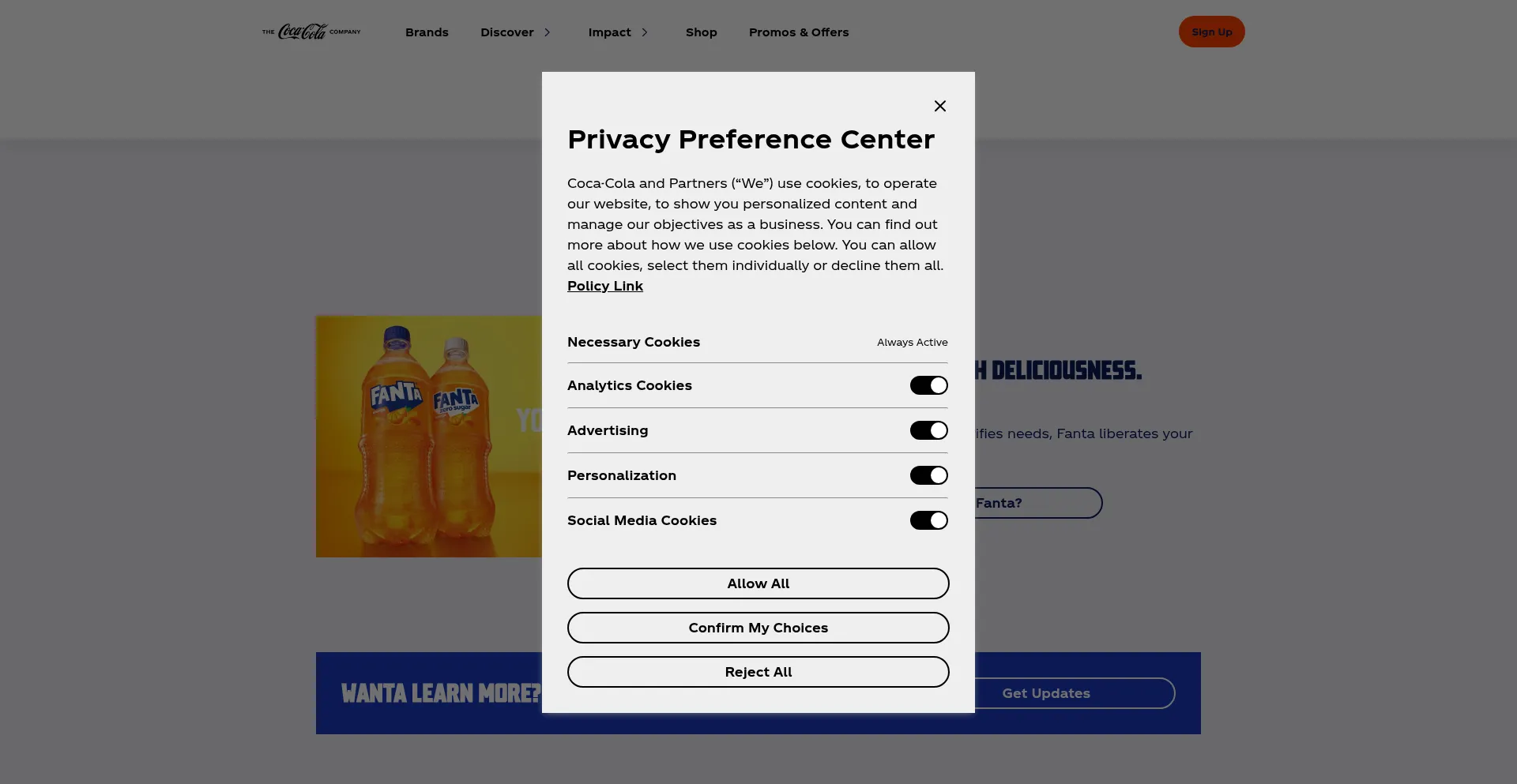 该网站实现符合GDPR或CCPA等隐私法规的cookie同意机制。这表明 fanta.com 遵守数据保护标准并为用户提供对个人数据收集实践的控制。