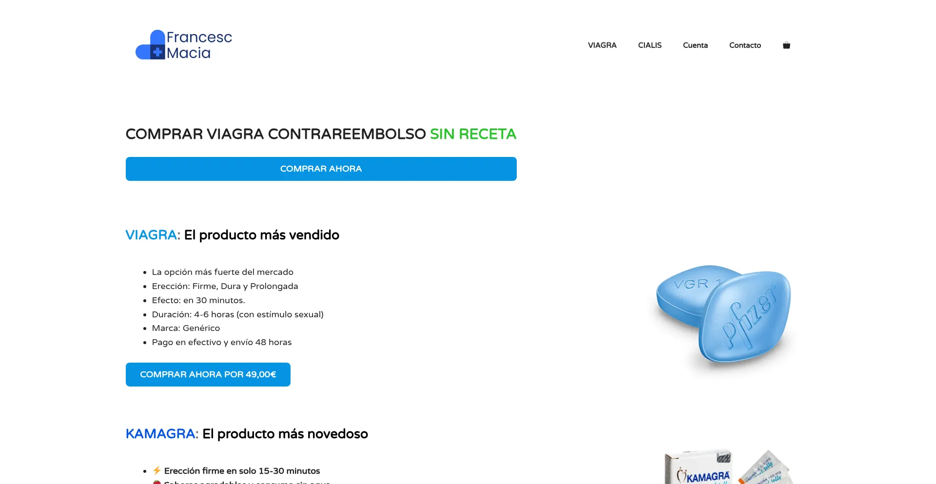 Compra Viagra sin receta y paga contrareembolso. Envío 48h desde FARMACIA FRANCESC MACIÀ. Discreción total en toda España. Compra segura.