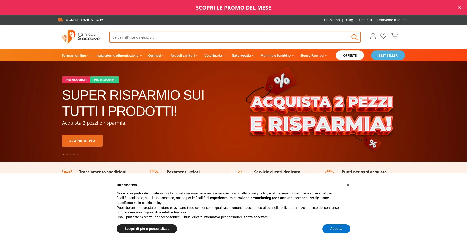 该网站显示来自认可机构的安全认证或信任印章,表明符合安全标准、数据保护协议或行业法规。来自 farmaciasoccavo.it 的信任印章表明遵守已建立的安全实践和运营透明度。
